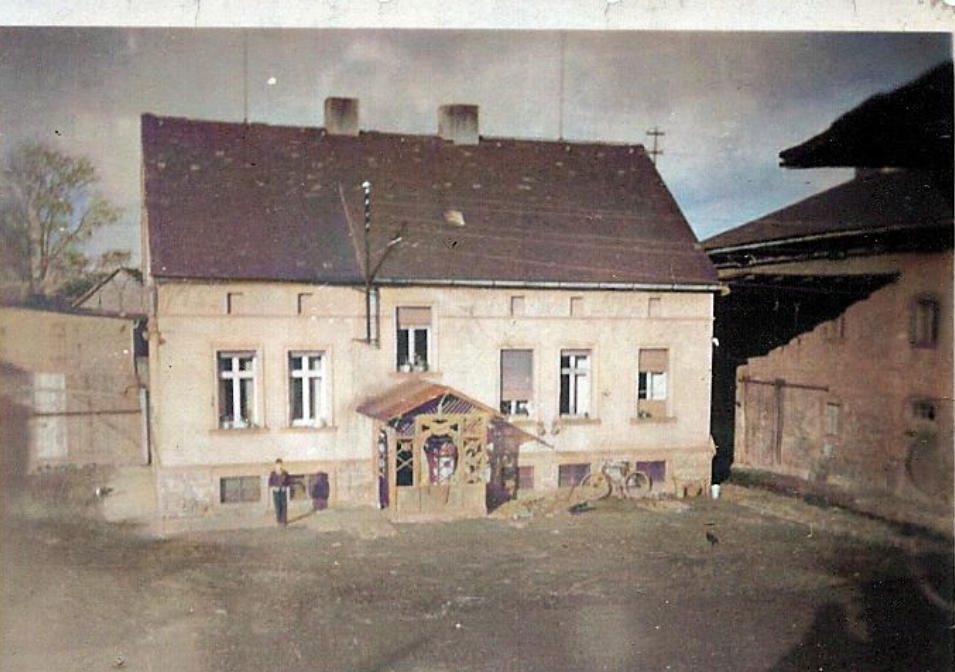 Obige Aufnahme entstannt ca. 1949 bis 1952. Rechts vom mittleren Flurfenster oberhalb der Veranda wohnt Familie Robert Werner, links davon meine Eltern, Familie Willi Meier. Mehr zu diesem Foto könnt hier hier lesen: