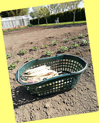 Auch die gepflanzten Kastanien und Weiden schlagen prächtig aus. Wegen der lananhaltenden Kälte, gabs den ersten Spargel erst im Mai.
