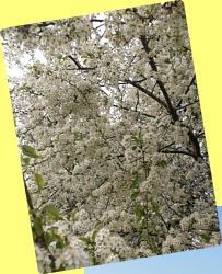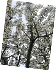 Links der Blütenzauber der wilden Kirche am Fischteich.