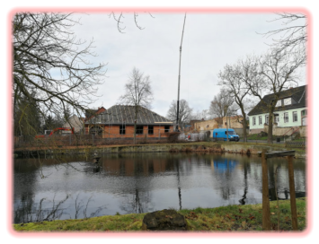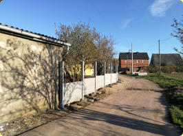 Nicht nur bei Familie Familie Wichert und Müller am Dorfteich wird gebaut. habe ich ja schon öfters berichtet. Familie Schuster ließ sich dass Grundstück mit einem Betonzaun umfrieden. Foto rechts.