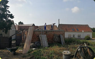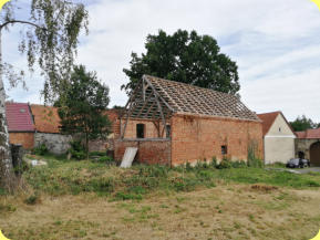 Vor allem das in die Jahre gekommene Wellasbestdach wurde heruntergemmmen und durch Ziegelsteine ersetz.