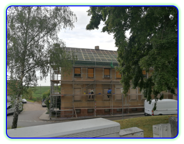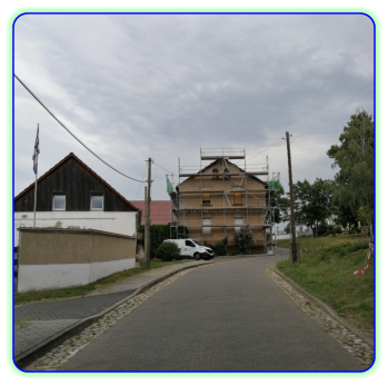 Bei Familie Feldmann stehen wieder die Gerüste. Nachdem 2019 das Dach der Scheune erneuert wurde, ist jetzt das Wohnhaus an der Reihe. Unzulänglichkeiten an der Fassade werden ausgebessert und aufgehübscht.