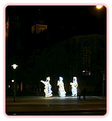 Oben die Drei Weisen vor der Kathedrale St. Sebastian
